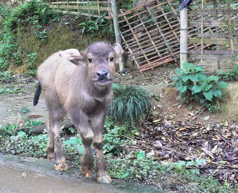 D'ailleurs, c'est bien simple, à peine sorti de la ville, on ne voit que lui. Paissant placidement dans les champs ou au bord des rizières, marchant nonchalamment le long de la route, vautré dans un marigot, attelé à une charrue, débardant d'énormes bambous, voire servant de monture improvisée à un enfant déluré, il fait partie du paysage. Impossible donc, de le manquer quand on se promène à la campagne. Depuis ce quart de siècle que je connais puis vis au Vietnam, j'ai eu maintes occasions de croiser sa route, et même d'entrer parfois en relation de façon inopinée. Je me souviens ainsi de ce jour où j'usais les pneus de ma moto sur des chemins empierrés du côté de Phu Ly. J'avais quitté la route principale pour m'engager à l'aveugle dans la première sente venue, histoire d'avoir l'impression d'être un aventurier explorant des contrées inconnues…
