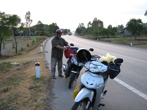 Je me dirige tout naturellement vers la voie rapide, mais Tuân m’en dissuade de ces simples mots : «Non, pas la voie rapide, il y a des clous, la nuit. On prend l’ancienne route».