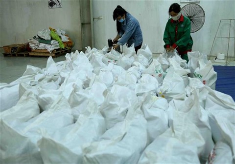 | Emballage de riz dans une société à Hanoï. |
