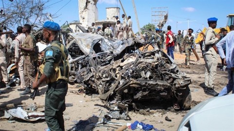 | Les forces de sécurité déployées sur le lieu de l'attentat à Mogadiscio, le 28 décembre. |