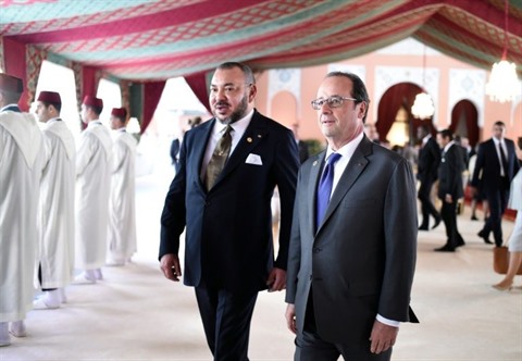 | Le roi du Maroc, Mohammed VI (gauche), aux côtés du président français François Hollande, le 15 novembre à Marrakech. |