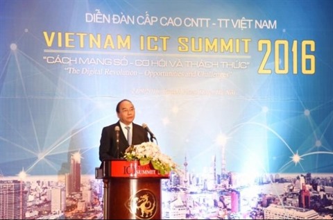 | Le Premier ministre Nguyên Xuân Phuc prononce un discours au Vietnam ICT Summit 2016. |