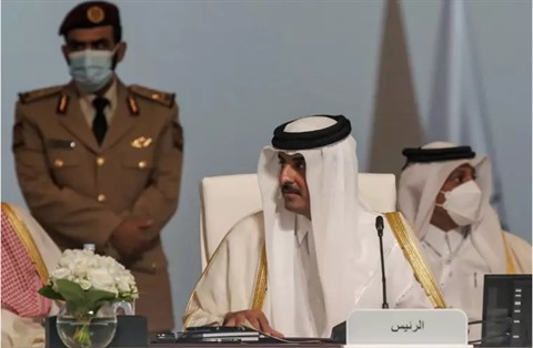 | L'émir du Qatar, cheikh Tamim ben Hamad Al-Thani, au Forum des pays exportateurs de gaz (FPEG) à Doha, le 22 février. |