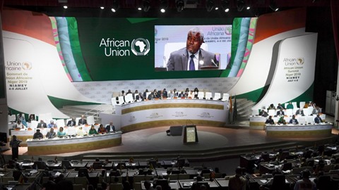 | Le président de la Commission de l'Union africaine Moussa Faki Mahamat, le 4 juillet, devant les ministres des Affaires étrangères de l'UA réunie en sommet à Niamey. |