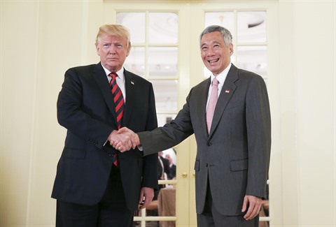 | Le PM singapourien Lee Hsien Loong (droite) et le président américain Donald Trump. |