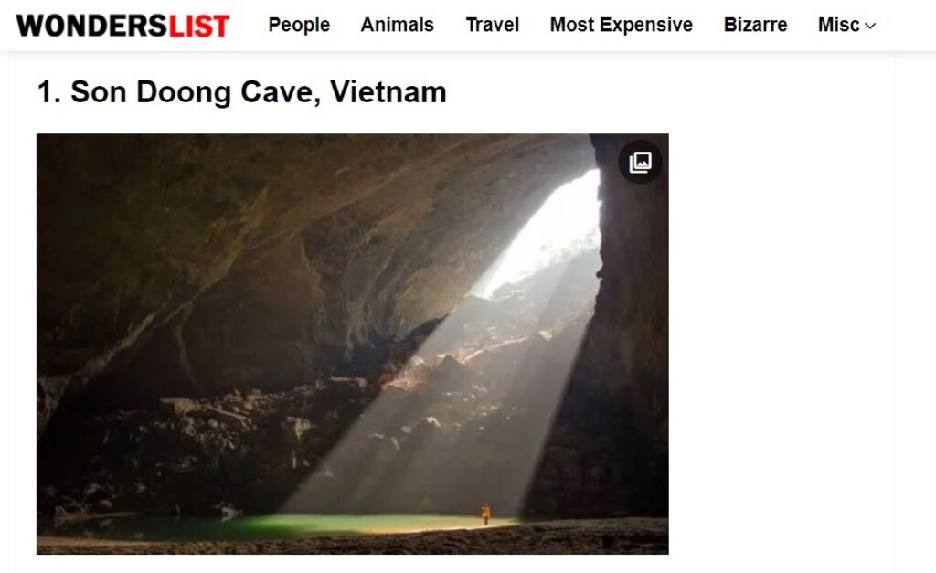 Son Doong, a noté le site web américain Wonderslist, est la plus grande grotte du monde. Elle s'est formée sur une faille de la chaîne de montagnes Truong Son et a été érodée par les eaux souterraines pendant des millions d'années, ce qui a créé un tunnel géant.