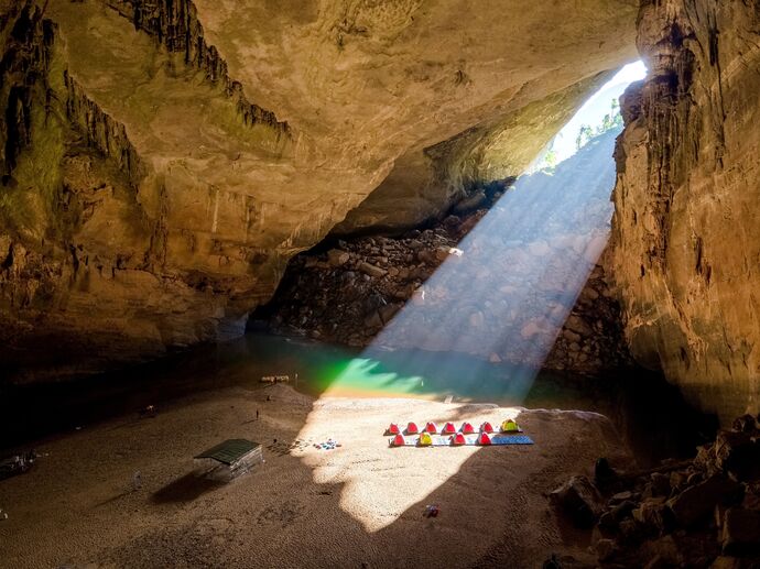 La grotte de Son Doong a été découverte par un homme de la région en 1991, et explorée entièrement en 2009 par des spéléologues britanniques, la grotte mesure près de 213 m de large, 152 m de haut, et près de 9,65 km de long. Formée au cours de millions d’années d’existence la grotte est suffisamment grande pour donner l’impression que les explorateurs ressemblent à des fourmis.
