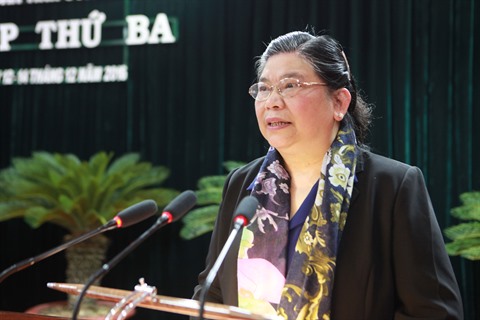 | La vice-présidente de l’AN vietnamienne, Tong Thi Phong, lors de l'ouverture de la 3e session du Conseil populaire de la province de Son La (Nord), le 12 décembre. |