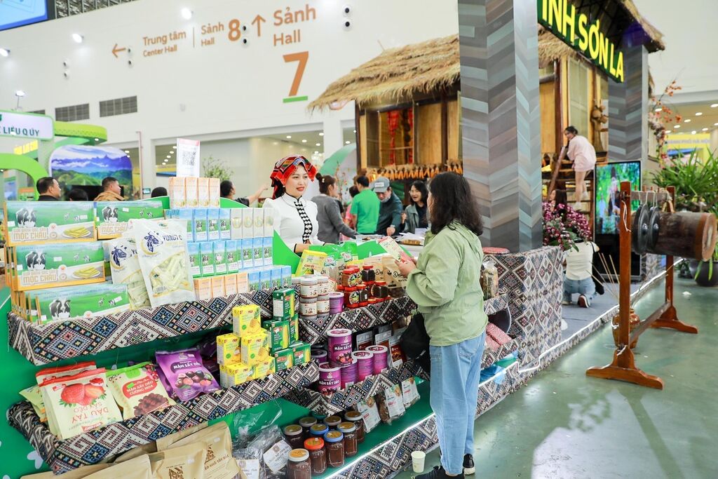 Parallèlement aux activités culturelles, Son La a exposé une large gamme de produits agricoles, de spécialités régionales et de produits labellisés "Chaque commune, un produit" (OCOP). L'exposition a permis aux habitants de Hanoï et aux touristes de découvrir toute la richesse des productions locales.
