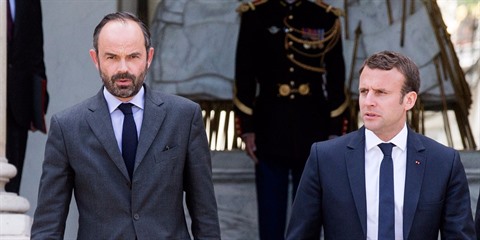 | Le président Emmanuel Macron (droite) et le Premier ministre Edouard Philippe le 13 juillet à Paris. |