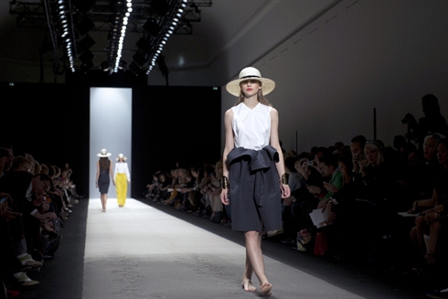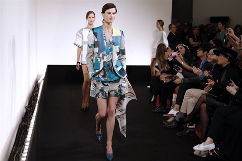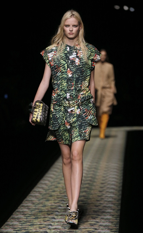 Jungle beat : chez Kenzo, c'est l'appel de la jungle ! Résultat des imprimés très luxuriants ou animaliers. Au milieu, le duo Humberto Leon et Carol Lim propose aussi sa version de la saharienne et autre vêtement pratique pour aller en safari ou dans la jungle des villes. Des tigres se cachent dans des motifs végétaux ou un pantalon à effet botte en trompe l'oeil. Les impressions léopards se déclinent en orange, turquoise ou jaune, sans doute pour se faire repérer plus vite...
