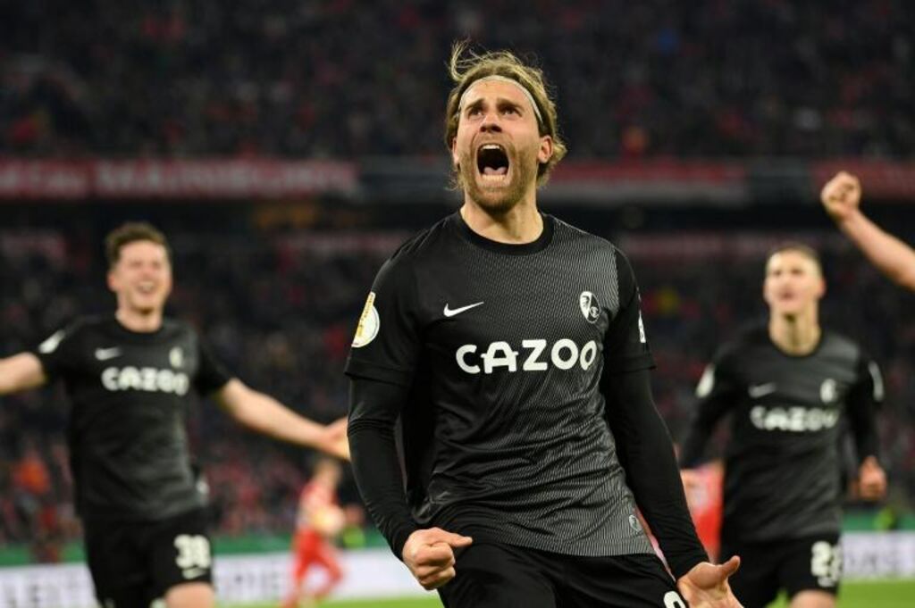 | L'attaquant Lucas Höler, double buteur le 4 avril contre le Bayern Munich, et qualifié avec Fribourg en demi-finale de Coupe d'Allemagne. |