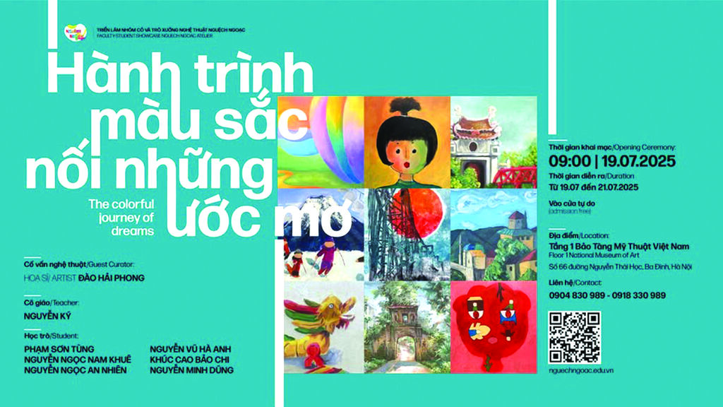 “Voyage en couleurs - Relier les rêves” offre un espace où l’âme enfantine se laisse porter par l’art pour raconter des histoires de village natal, de famille, de nature… et de ces souvenirs invisibles que seuls les enfants peuvent voir. Chaque dessin est une douce note, un murmure d’un monde pur et riche de sens.