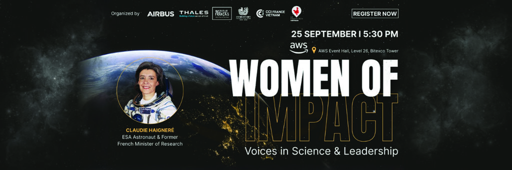 Dans un monde en perpétuelle évolution, porté par l’innovation et le progrès scientifique, de plus en plus de femmes occupent des rôles de pionnières, de créatrices et de leaders. Airbus, Thales, l’Institut français du Vietnam, la Chambre de Commerce et d’Industrie France - Vietnam (CCIFV) et la French Tech Vietnam sont fiers de co-organiser à Hô Chi Minh-Ville une conférence exceptionnelle réunissant des femmes remarquables issues de la science, de la technologie et de l’entrepreneuriat.