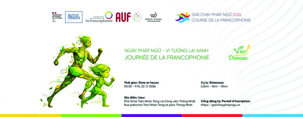 À la suite du succès des éditions précédentes en 2022, 2024 et 2025, l’Ambassade de France au Vietnam, l’Institut français du Vietnam, l’Organisation internationale de la Francophonie (OIF), l’Agence universitaire de la Francophonie en Asie-Pacifique (AUF – Asie-Pacifique) et la Délégation générale Wallonie-Bruxelles au Vietnam coorganisent la Journée de la Francophonie 2026, promettant un événement fédérateur, convivial et inspirant.Dans ce cadre, la 4e édition de la Course de la Francophonie fait son grand retour, poursuivant son engagement à promouvoir les valeurs positives de la communauté francophone à travers le sport, la culture et un mode de vie sain. L’édition 2026 mettra également l’accent sur un mode de vie plus durable.