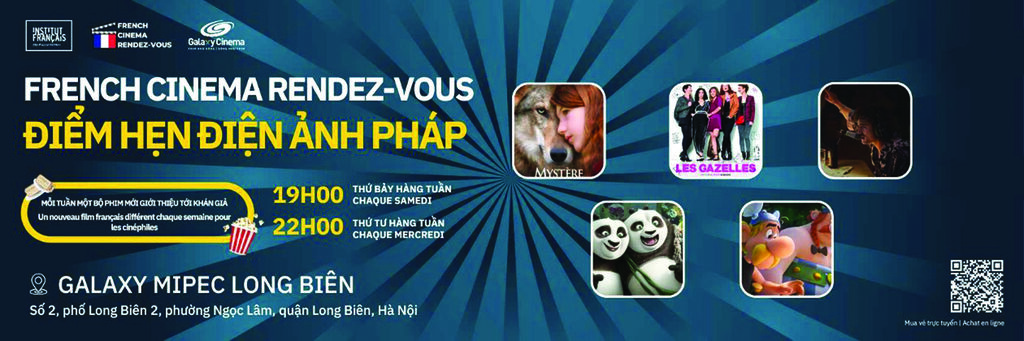 Le cinéma Galaxy Mipec Long Bien rejoint le réseau “French Cinéma rendez-vous” de l’Institut français du Vietnam. Le Galaxy Mipec Long Bien projette un film français différent chaque semaine à raison de deux séances hebdomadaires :