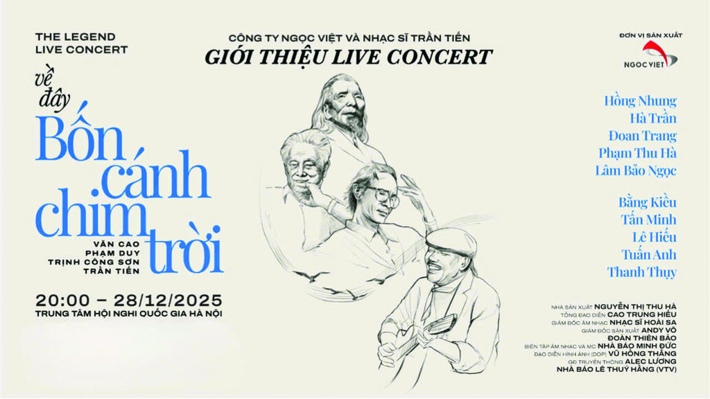 Le Legend Live Concert intitulé “Về đây bốn cánh chim trời” (Revenez, ici, les quatre oiseaux du ciel) est un spectacle musical exceptionnel, rassemblant pour la première fois - et peut - être la seule - quatre figures emblématiques de la musique vietnamienne moderne : Van Cao, Pham Duy, Trinh Công Sơn et Trân Tiên.