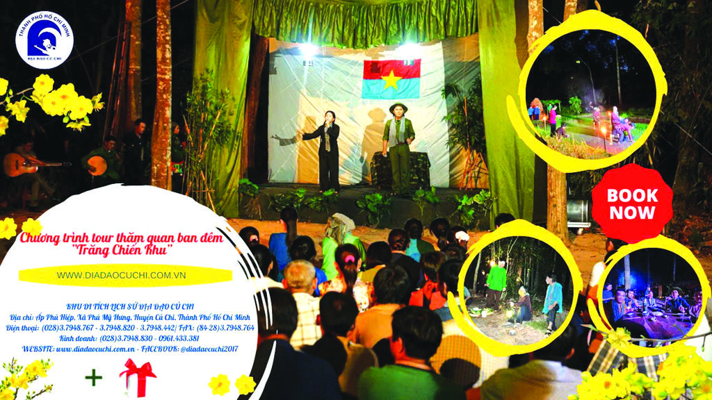 Sous le clair de lune, les visiteurs assisteront à des reconstitutions vivantes : villageois creusant les tunnels, jeunes s’engageant au front, travaux de pilage du riz, chants alternés entre garçons et filles dans les rizières, marché nocturne, spectacles pour soldats et civils… Le tout rythmé par les grondements des bombes et les sifflements des avions ennemis.