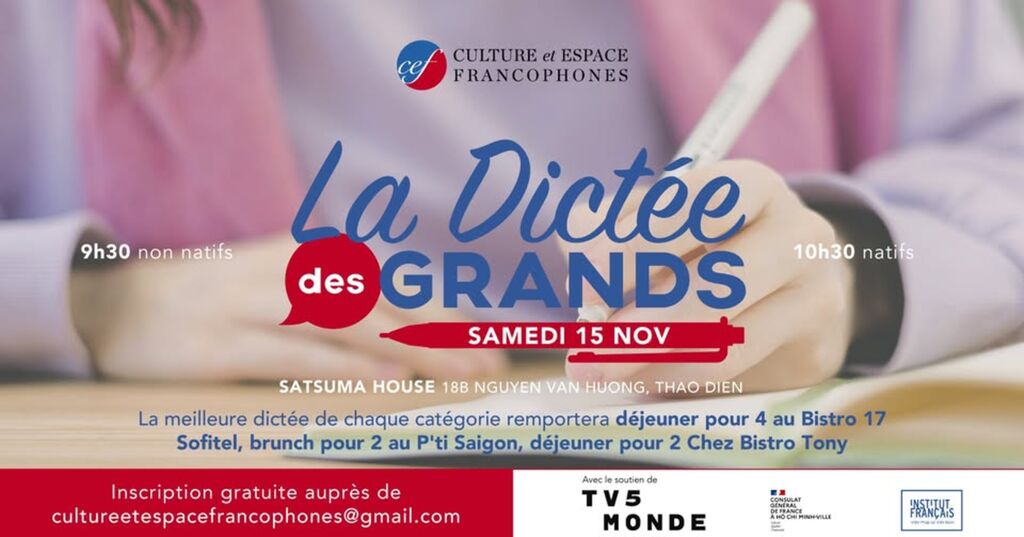 Que vous soyez francophone confirmé, lycéen ou apprenant passionné, venez relever le défi le samedi 15 novembre à Hô Chi Minh-Ville.