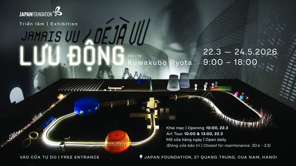 Du 22 mars au 24 mai, le Centre culturel du Japon au Vietnam présente “Jamais vu / Déjà vu” de l’artiste Kuwakubo Ryota, figure majeure de l’art technologique japonais. Lauréat de distinctions internationales, notamment au Japan Media Arts Festival (Grand Prix en 2003, Prix d’excellence en 2010), il s’est également illustré à Ars Electronica et Rokko Meets Art.