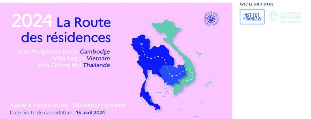 Les Instituts français du Vietnam (IVF), Cambodge (IFC) et l’Alliance française de Chiang Mai lancent leur appel à candidatures commun pour le programme régional “La Route des Résidences 2024”. Avec le soutien de l’Institut français, dans le cadre de la Fabrique des résidences.
