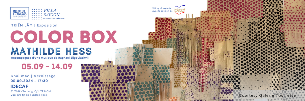 et les répétitions rythment ce travail. Au Vietnam la couleur apparaît. Elle découpe les motifs puis les assemble.