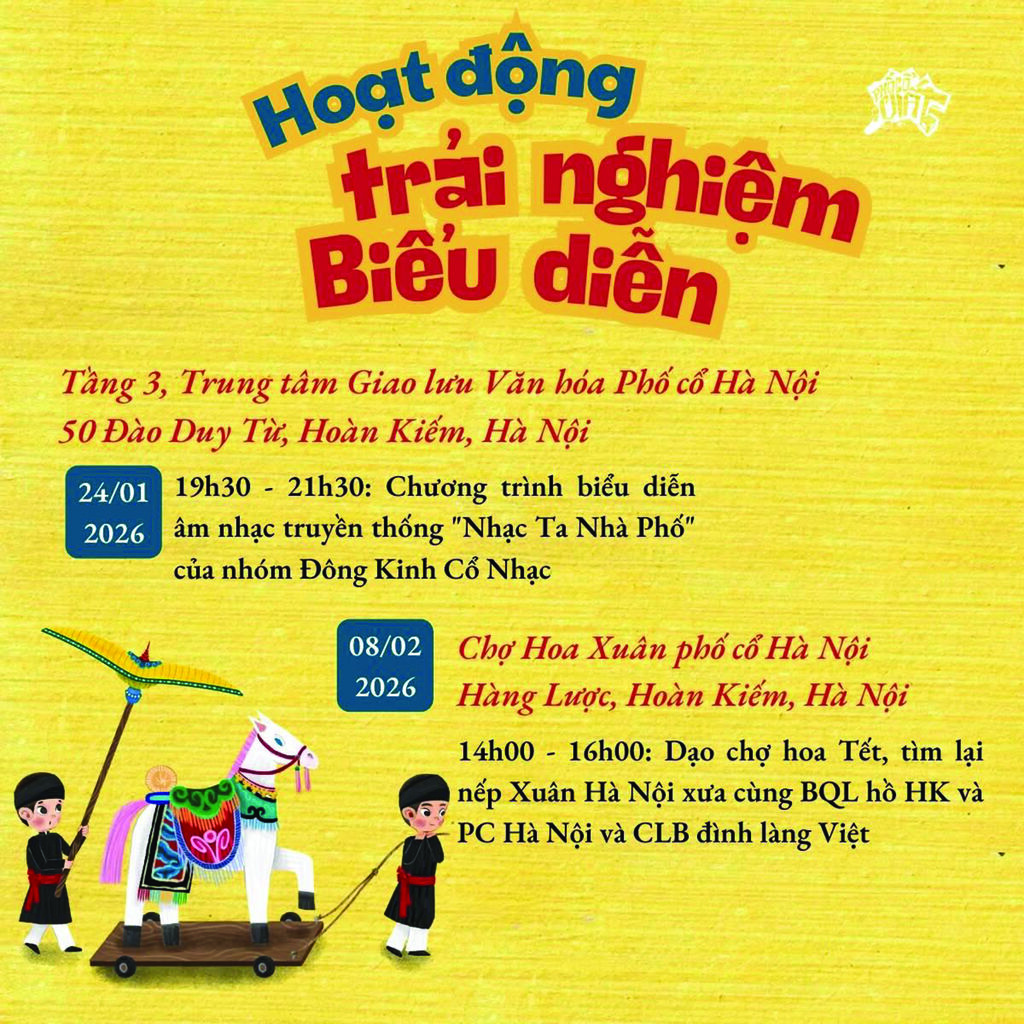 Sous l’égide du Comité de gestion du lac Hoàn Kiêm et du Vieux quartier de Hanoi, le programme “Têt Viêt - Têt Phô 2026” propose une multitude d’activités : expositions, spectacles d’arts traditionnels, rites populaires, ateliers de découverte ainsi que de nombreuses interactions pour les locaux et les touristes.
