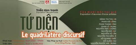 En mathématiques, en géométrie plane notamment, un quadrilatère est une figure à quatre côtés, ceux-ci ouvrant éventuellement à des triangles équilatéraux semblables. Dans la présente exposition de peintures, l’image du ''quadrilatère'' renvoie métaphoriquement aux quatre dimensions qu’évoquent ensemble l’espace et le temps : chaque artiste allant en effet explorer les différents pans de son art.