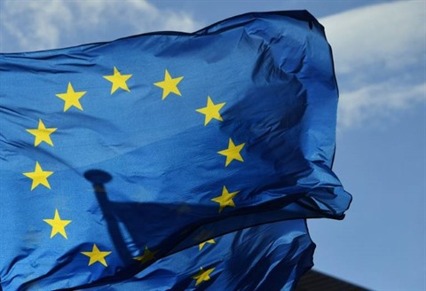 | Le drapeau européen flotte devant le siège de l'Union européenne à Bruxelles, le 7 mars. |