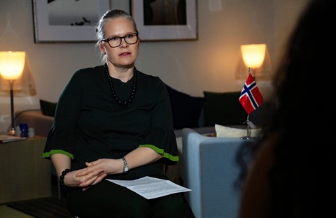 | L'ambassadrice de Norvège au Soudan, Therese Loken Gheziel, s'exprimant lors d'une interview à l'AFP, le 16 novembre. |
