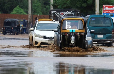 | Une rue de Khartoum après des pluies torrentielles le 13 août. |
