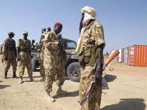 | Des soldats de l'armée sud-soudanaise à l'aéroport de Bor |