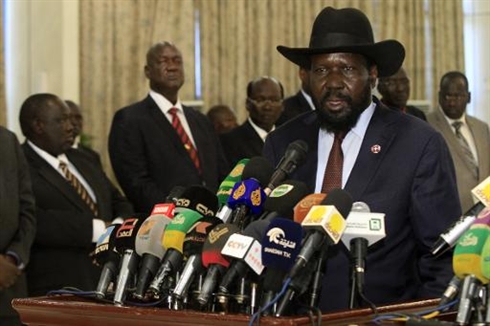 | Le président du Soudan du Sud, Salva Kiir, lors d'une conférence de presse à Khartoum, le 4 novembre. |