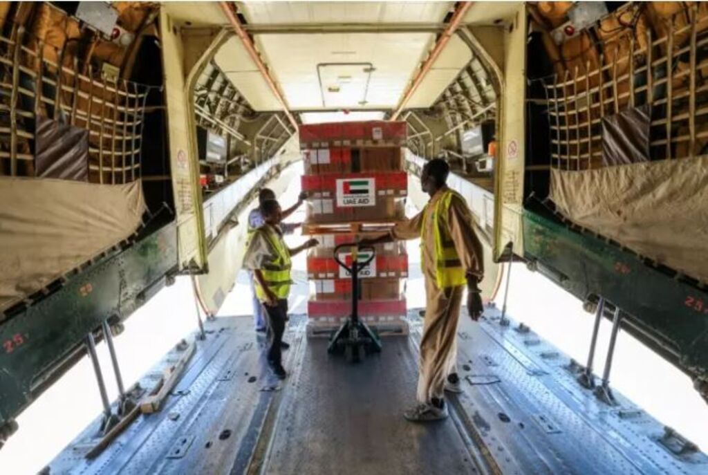 | De l'aide humanitaire de l'OMS et des Émirats arabes unis arrive par avion à Port-Soudan, le 5 mai. |
