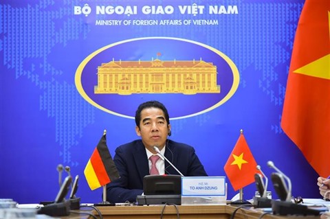 | Le vice-ministre vietnamien des Affaires étrangères, Tô Anh Dung, lors de la vidéoconférence. |