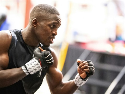 | Le super-welter français Souleymane Cissokho lors d'une séance d'entraînement à Hayward, en Californie, le 3 mai. |