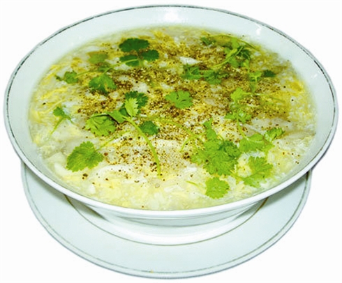 • Servir la soupe dans le bol, ajouter la coriandre, un peu d’oignon vert découpé, le poivre et ajouter 1 cuillère à café de sauce
