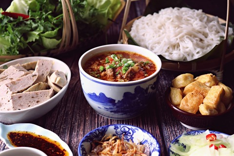 - Le plat est servi chaud avec des légumes, du tronc de jeune bananier ou des fleurs de bananier finement émincés et des herbes aromatiques. Selon les goûts, on peut ajouter quelques tranches de mortadelle, un peu de jus de citron vert et du piment en poudre.
