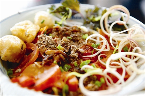 - Le plat est servi chaud avec des légumes, des troncs de jeune bananier ou des fleurs de bananier finement émincés et des herbes aromatiques. Selon les goûts, on peut ajouter un peu de crème de crevettes, du jus de citron vert, du piment en poudre sec et/ou grillé dans de l’huile...