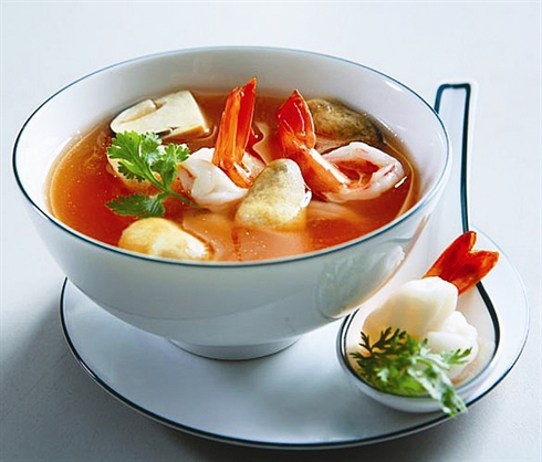 1. Décortiquez les crevettes et retirez les têtes. Mettez les carapaces et les têtes dans un wok, avec le gingembre, le poivre, l’ail, la citronnelle et la moitié des piments. Versez l’eau et portez à ébullition, puis laissez frémir 20 minutes à feu moyen. Filtrez le bouillon, rincez le wok et reversez le bouillon dedans.
