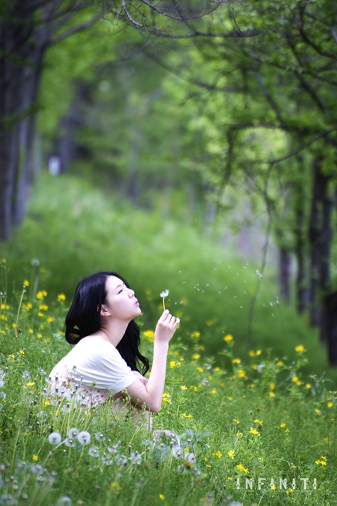 Thiếu nữ làm duyên, đứng mỉm cười.