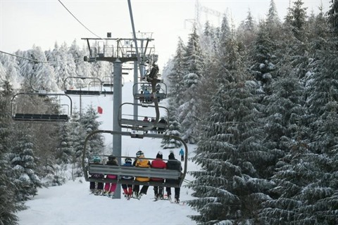 | Des skieurs empruntent un télésiège de la station du Lac Blanc le 29 janvier. |