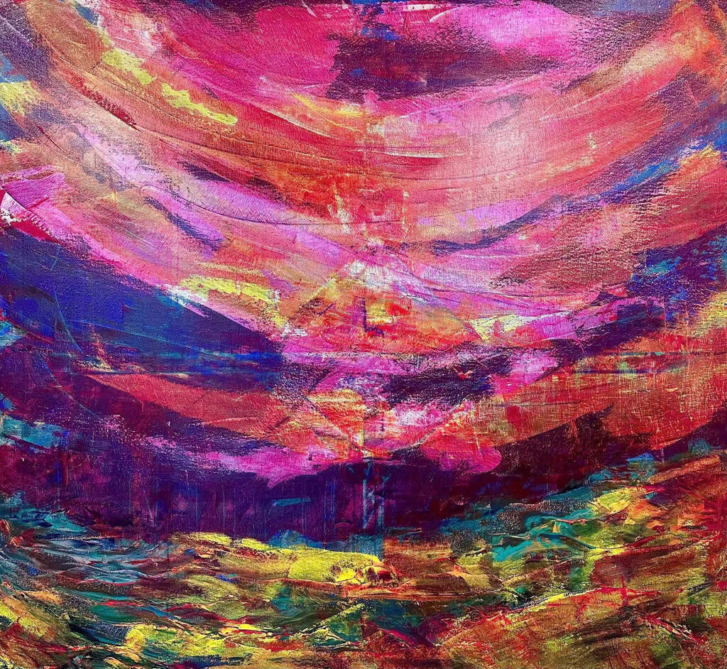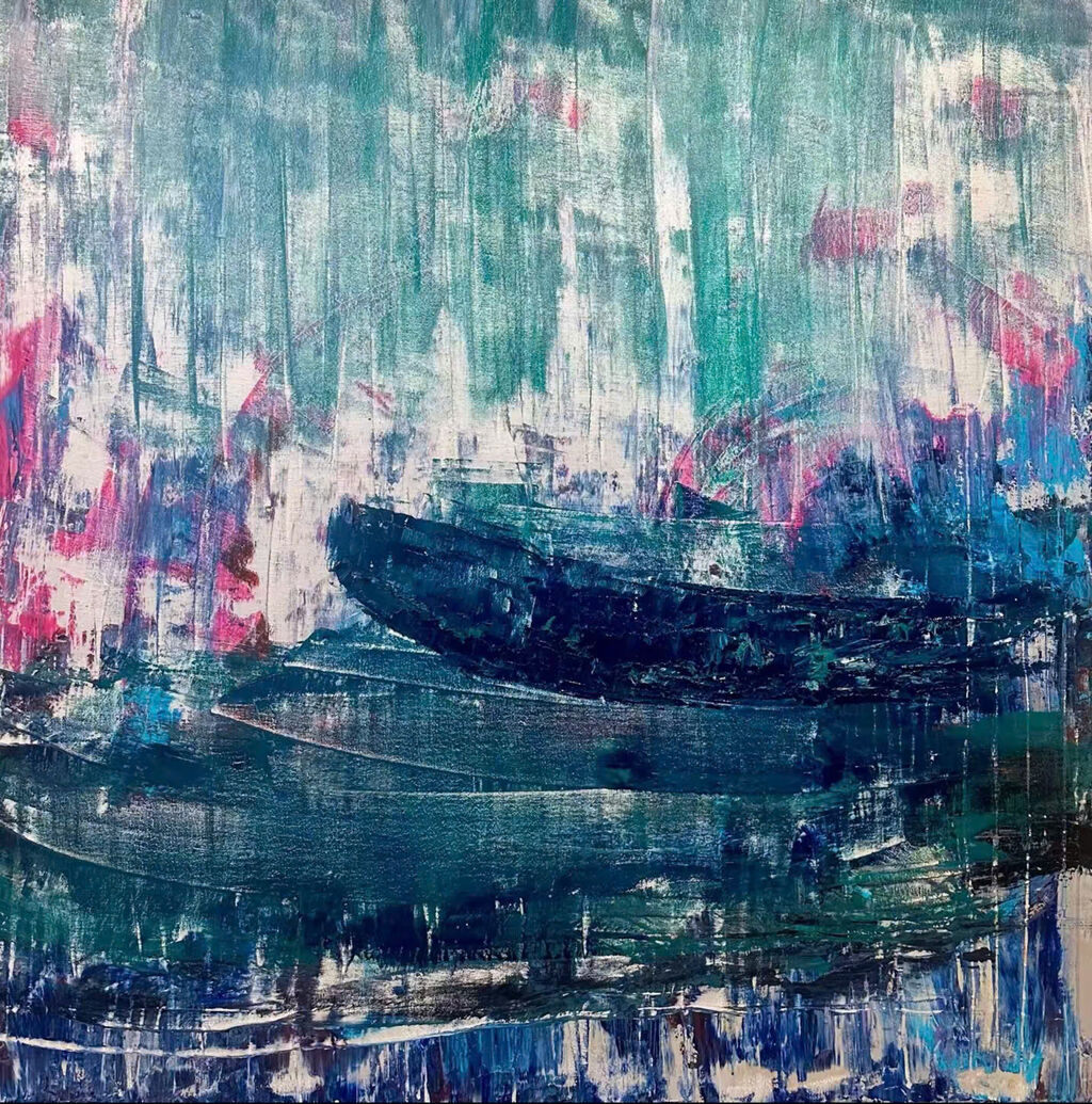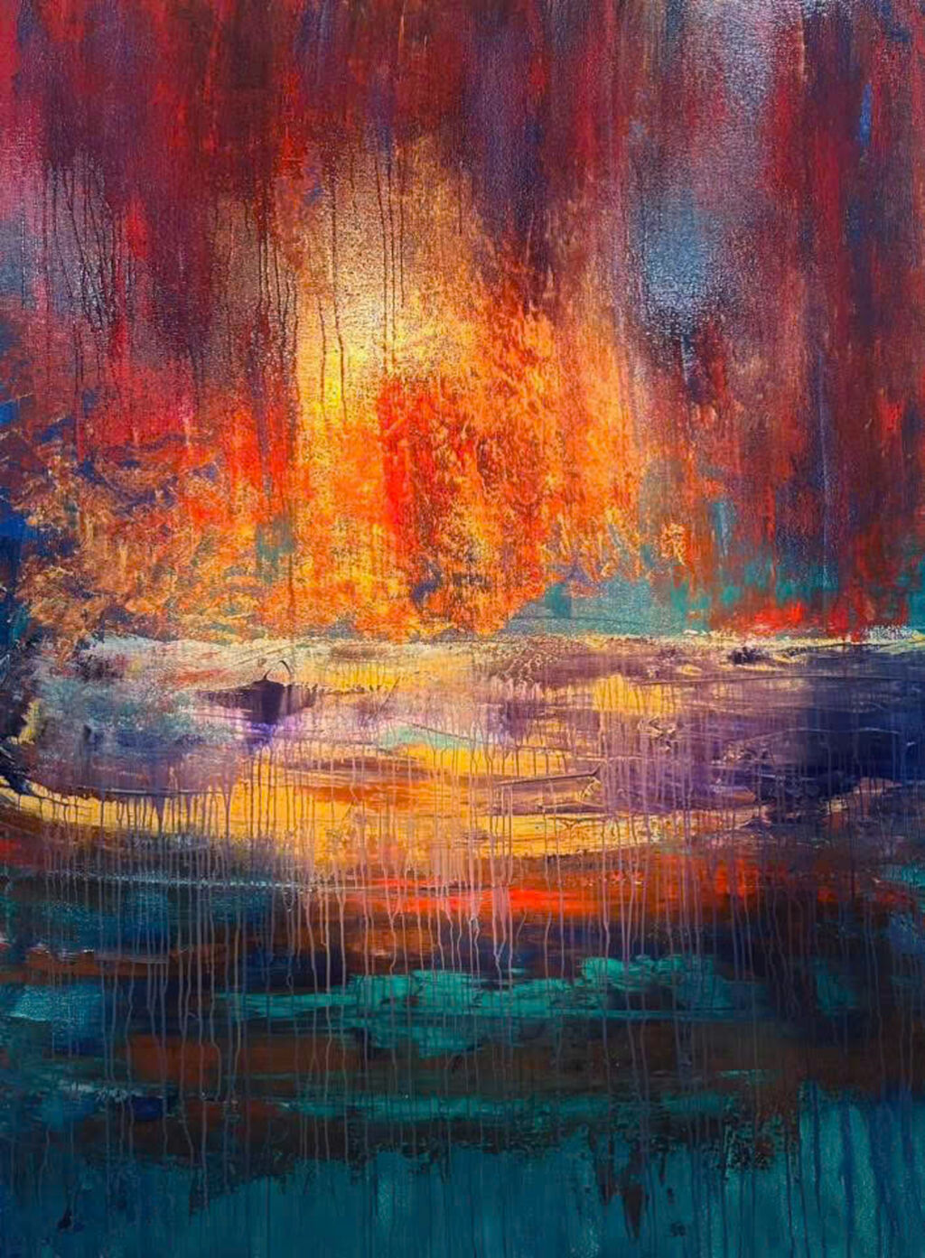 Portée par le tourbillon professionnel, elle avait mis la peinture entre parenthèses avant de renouer avec le pinceau en 2022. Sans plan préétabli, elle s’abandonne à l’émotion intuitive, peignant l’instant présent.