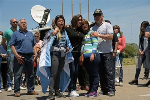 | Des proches des marins du sous-marin San Juan rassemblés devant la base de la Marine argentine, le 25 novembre 2017 à Mar del Plata. |