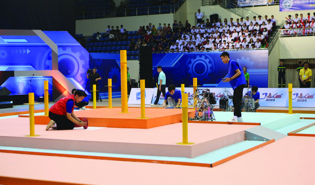 | Une équipe a mené à bien son projet lors du Concours vietnamien d’innovation robotique, qui s’est tenu début mai à Hanoï. |