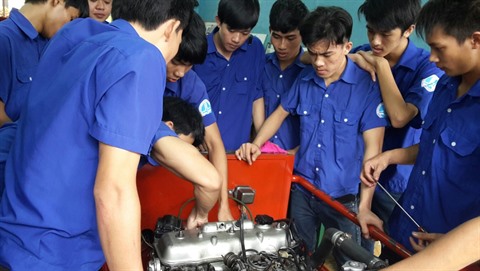 | Une classe de maintenance automobile du Collège technique et économique de Hô Chi Minh-Ville. |