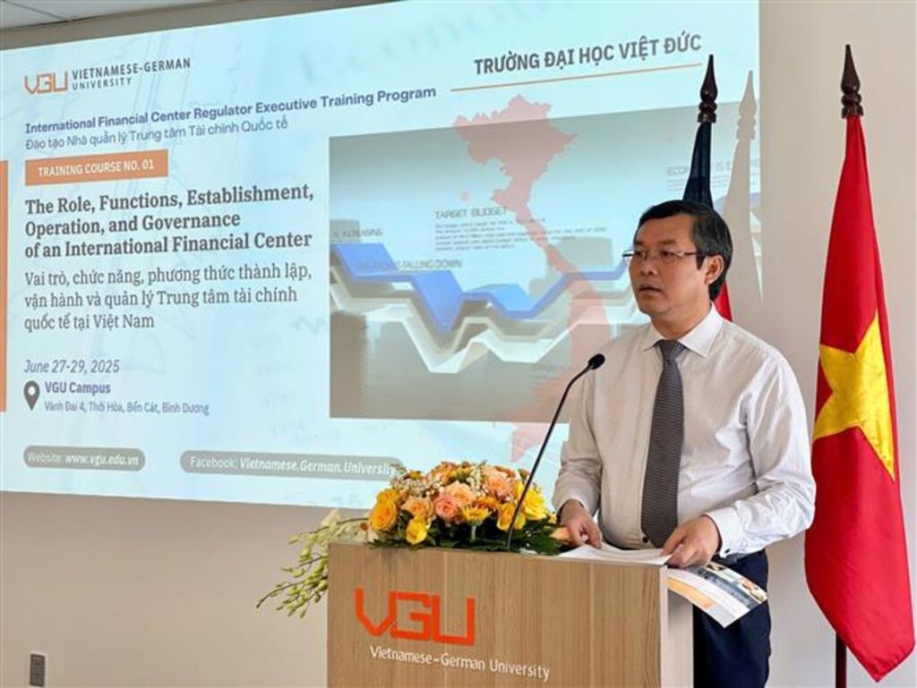 Ce cours constitue la première étape d’un programme de formation des cadres de la VGU destiné aux régulateurs des centres financiers internationaux. Cette initiative prévoit également des formations en leadership, des modules professionnels de courte durée et des cursus à temps plein. La VGU collabore étroitement avec l’Université Goethe de Francfort pour adapter le contenu pédagogique aux besoins concrets du Vietnam.