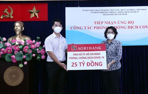 | Tô Thi Bich Châu, présidente du Comité du Front de la Patrie du Vietnam de Hô Chi Minh-Ville reçoit un don d'une valeur de 25 milliards de dôngs remis par Agribank. |