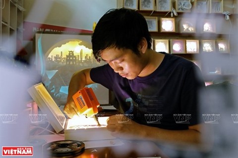 | L'artisan Nguyên Duy Linh a besoin d'environ cinq heures pour achever une boîte à lumière, |
