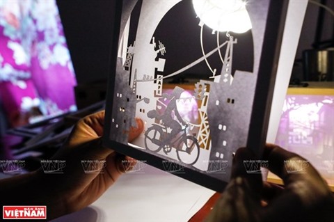 Les histoires d'une fille hanoïenne pédalant, d'un chauffeur de moto-taxi et d'une grand-mère regardant un ancien complexe d'appartements avec sa petite-fille sont racontées avec de la lumière, du papier et l'amour de l'artiste pour la capitale.